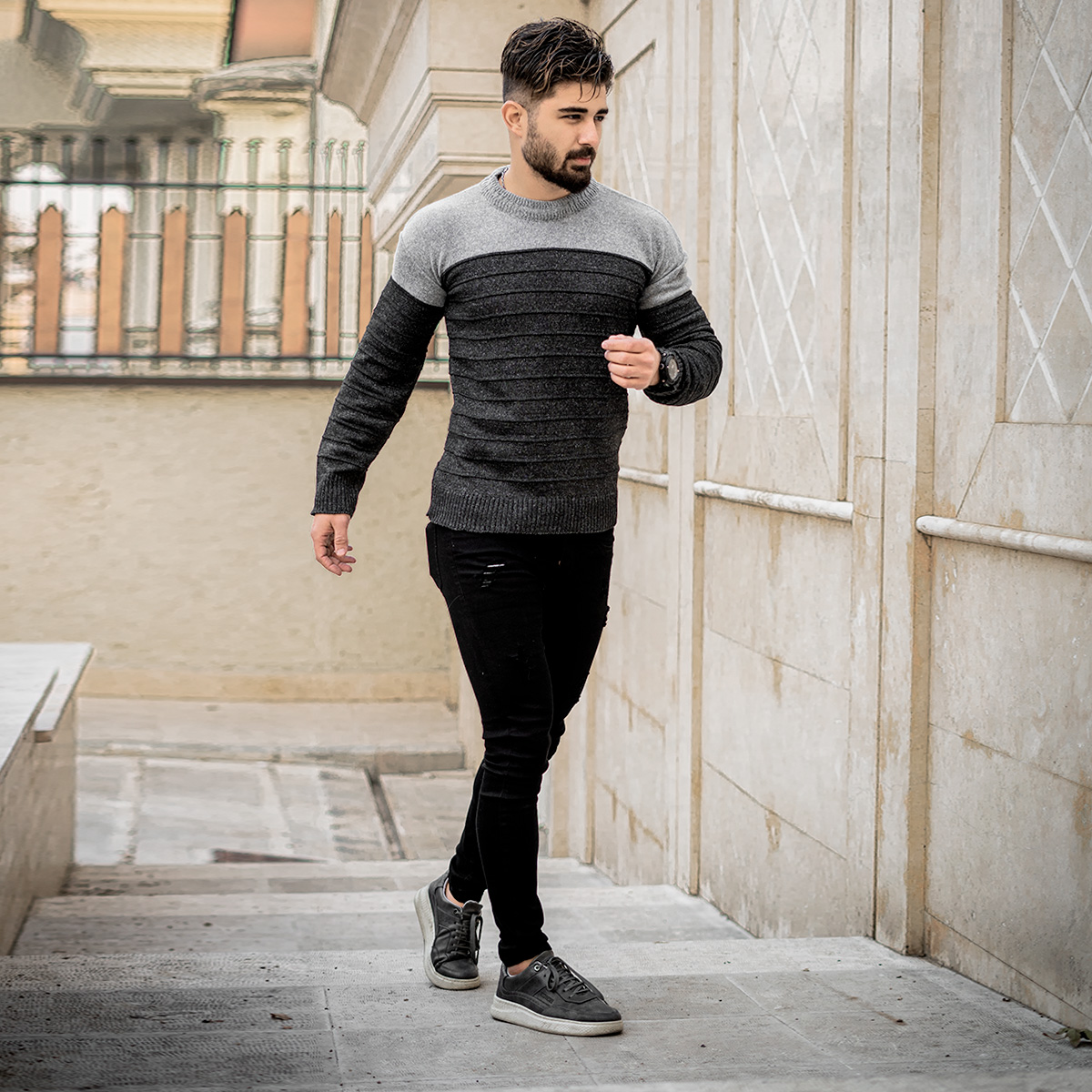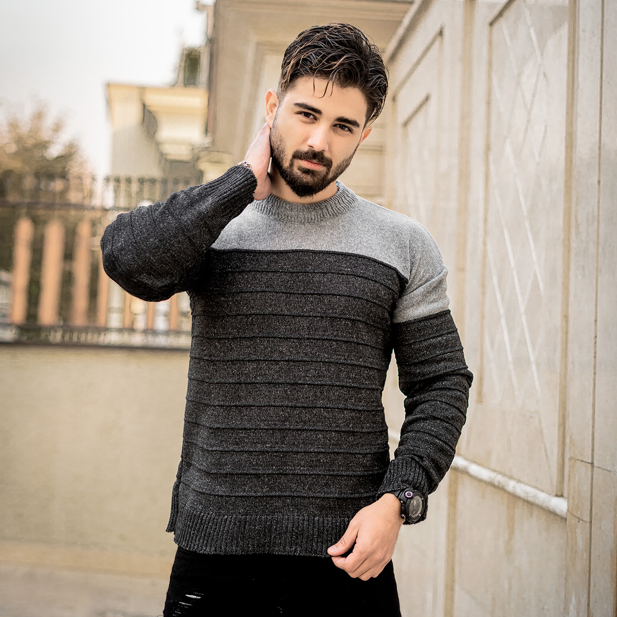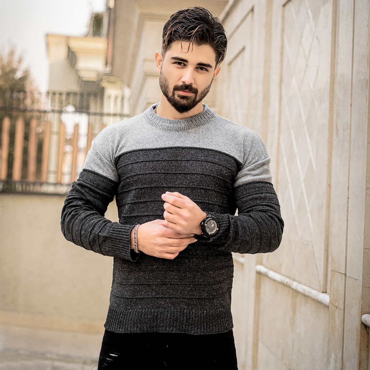پلیور راه راه طوسی ذغالی مردانه مدلloman