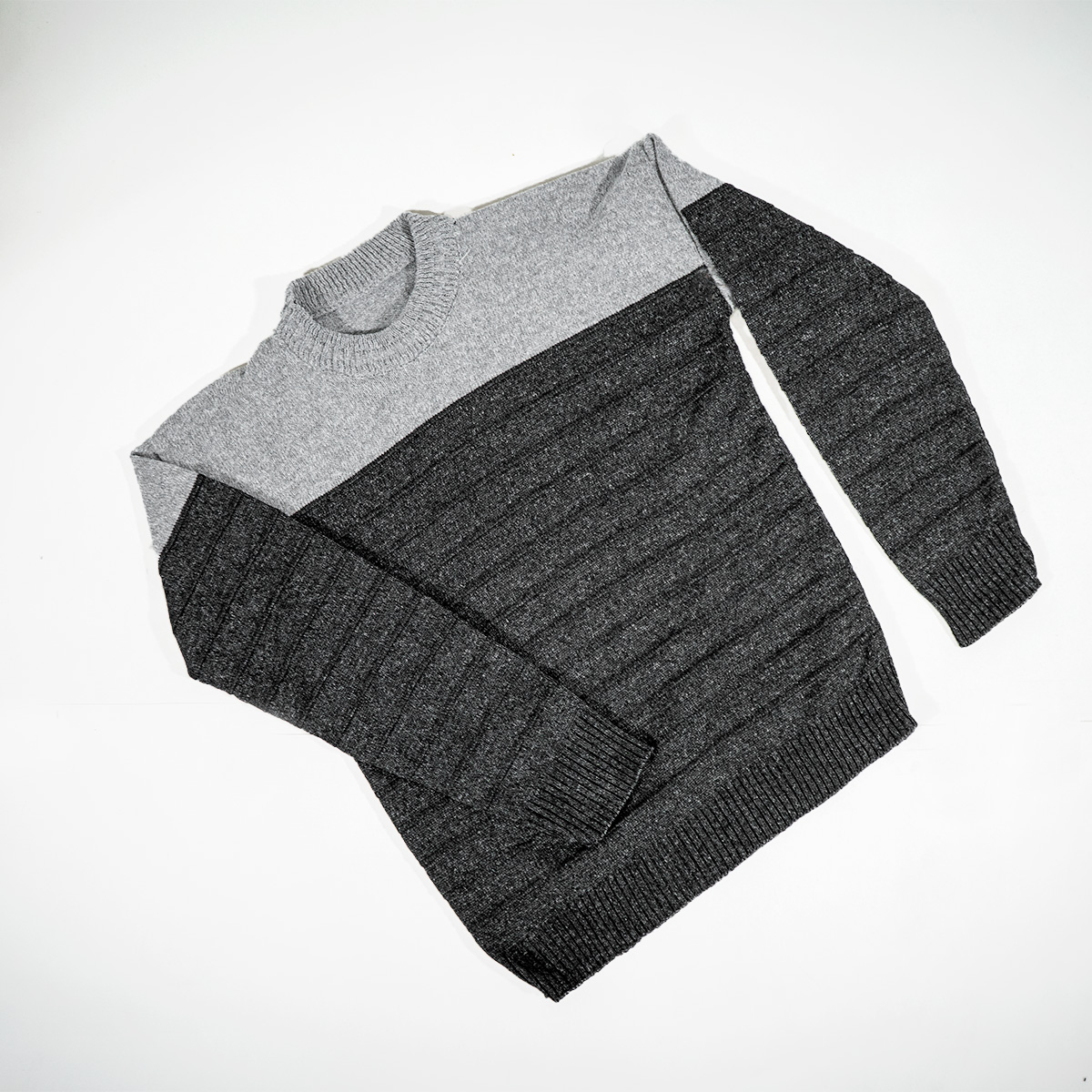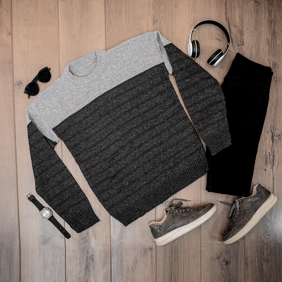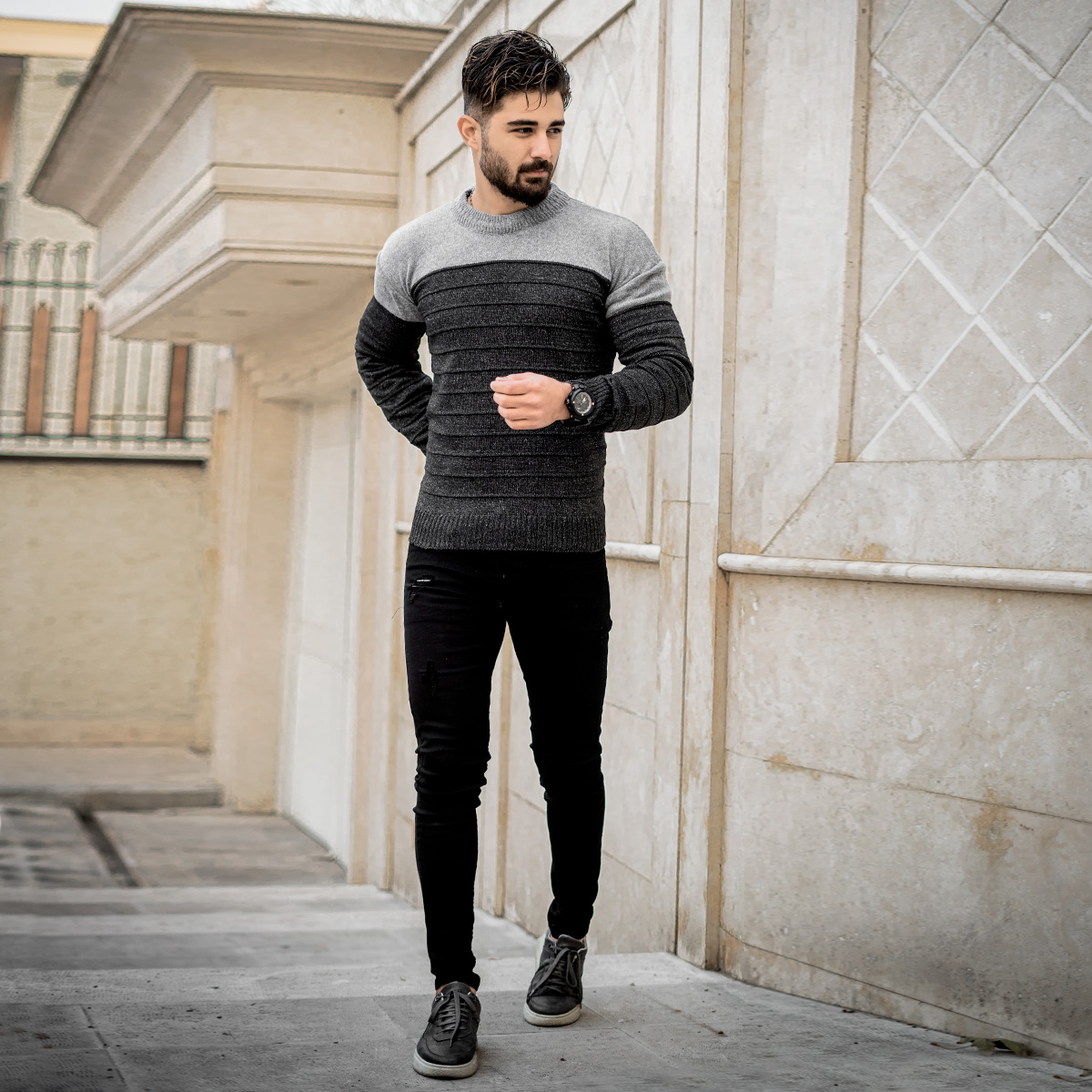 پلیور راه راه طوسی ذغالی مردانه مدلloman