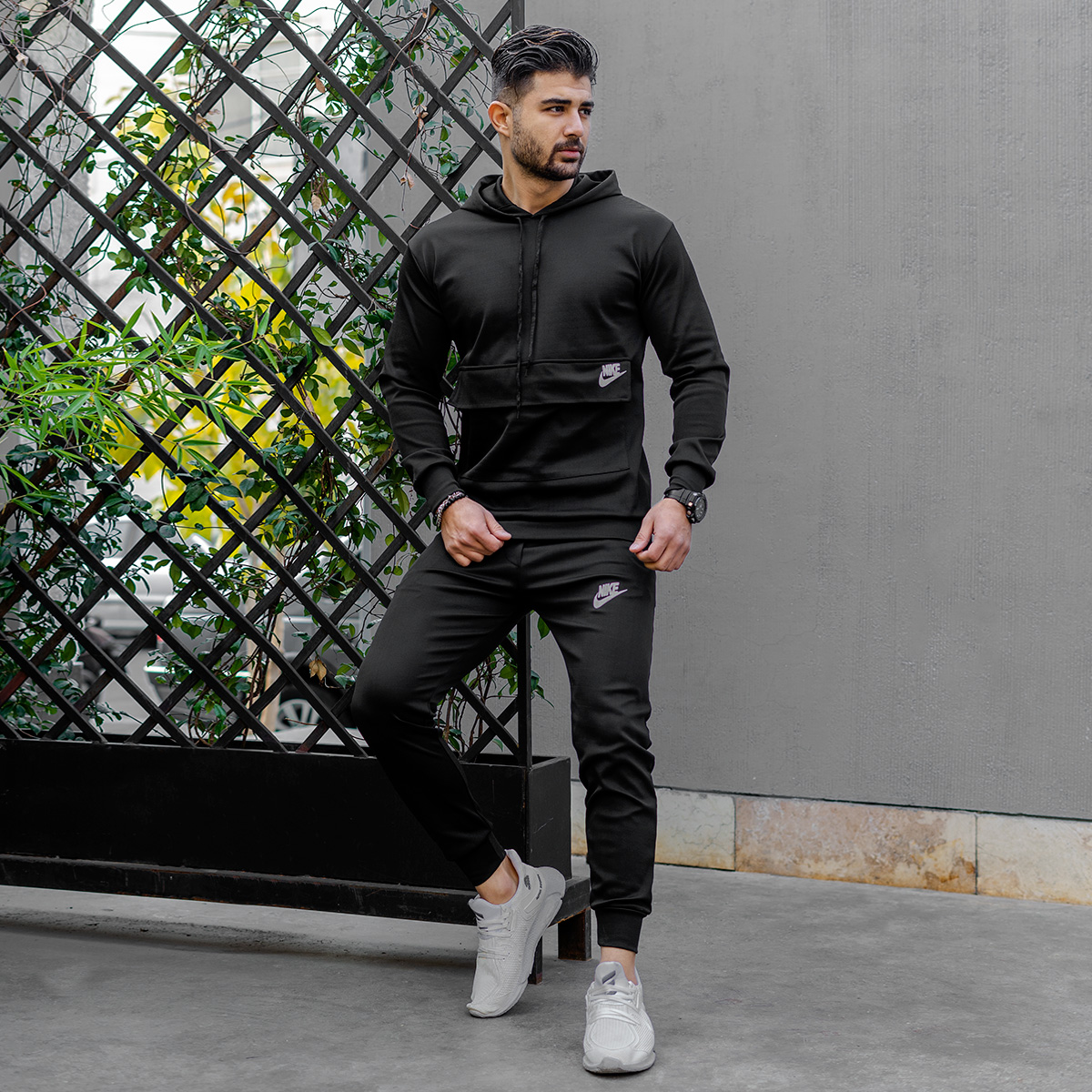 ست هودی شلوار جیب پاکتی نایک مشکی مردانه مدلNIVANO