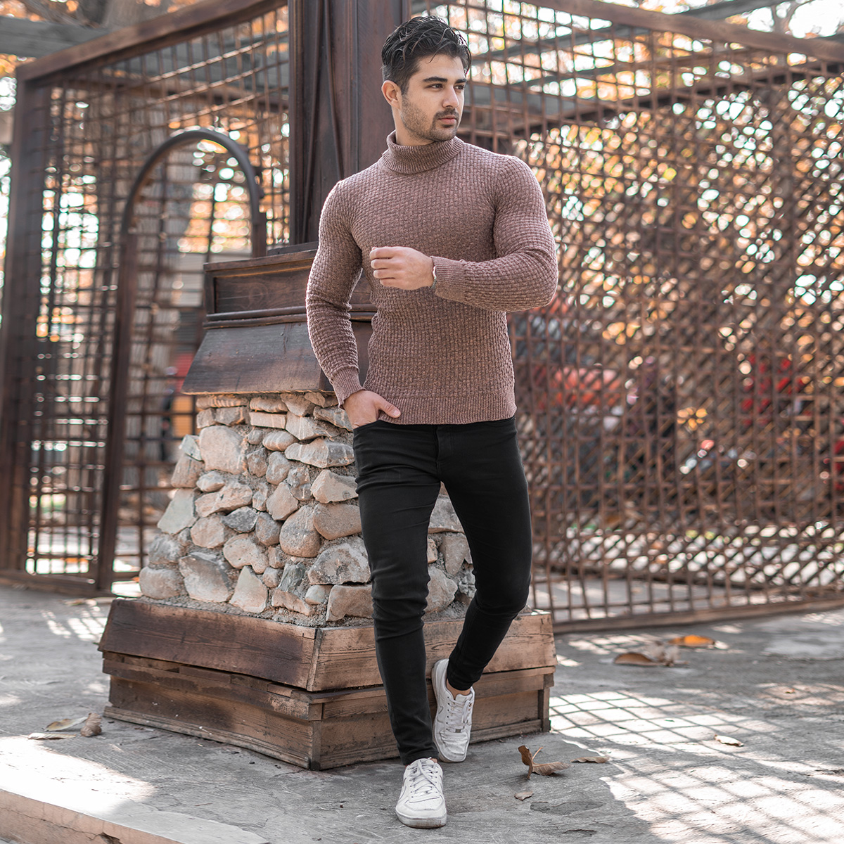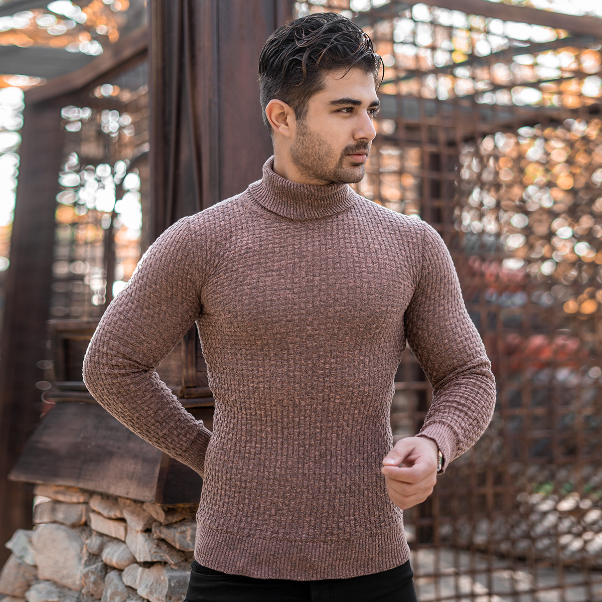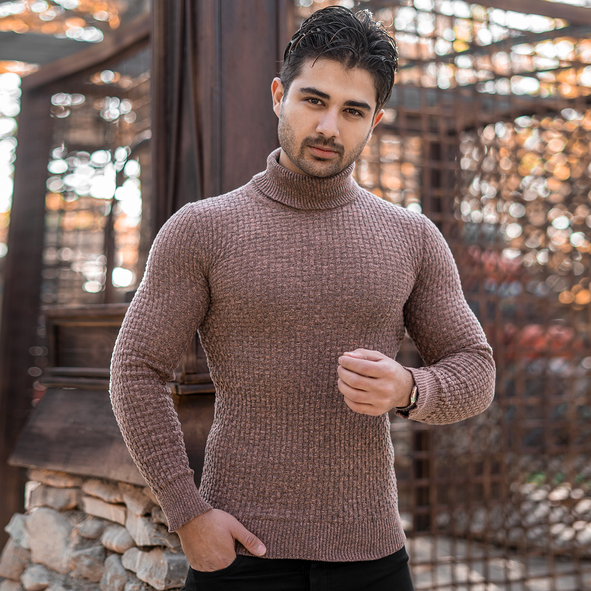پلیور یقه اسکی مردانه قهوه ای مدل Oktav