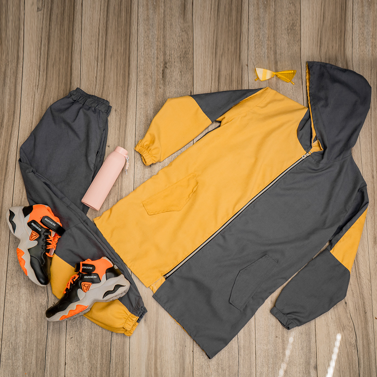 ست سوییشرت شلوار زنانه طوسی زرد مدل Tania