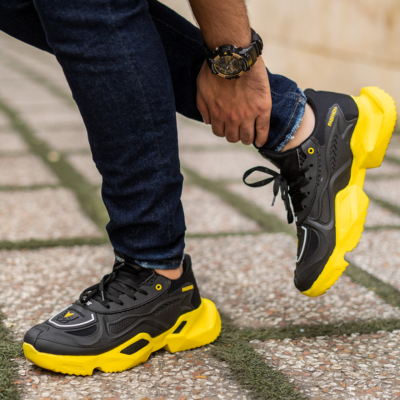 کفش ورزشی زرد مشکی مردانه مدل Y90