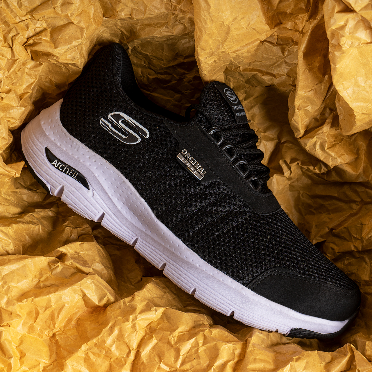 کفش اسکیجرزمردانه مشکی زیره سفید مدل zigzag