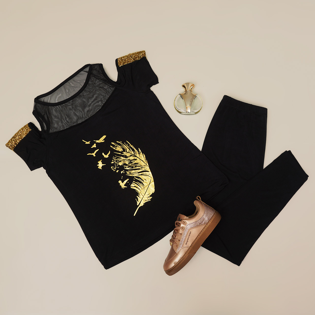 ست بلوز شلوار دخترانه طرح پر مدل Serin