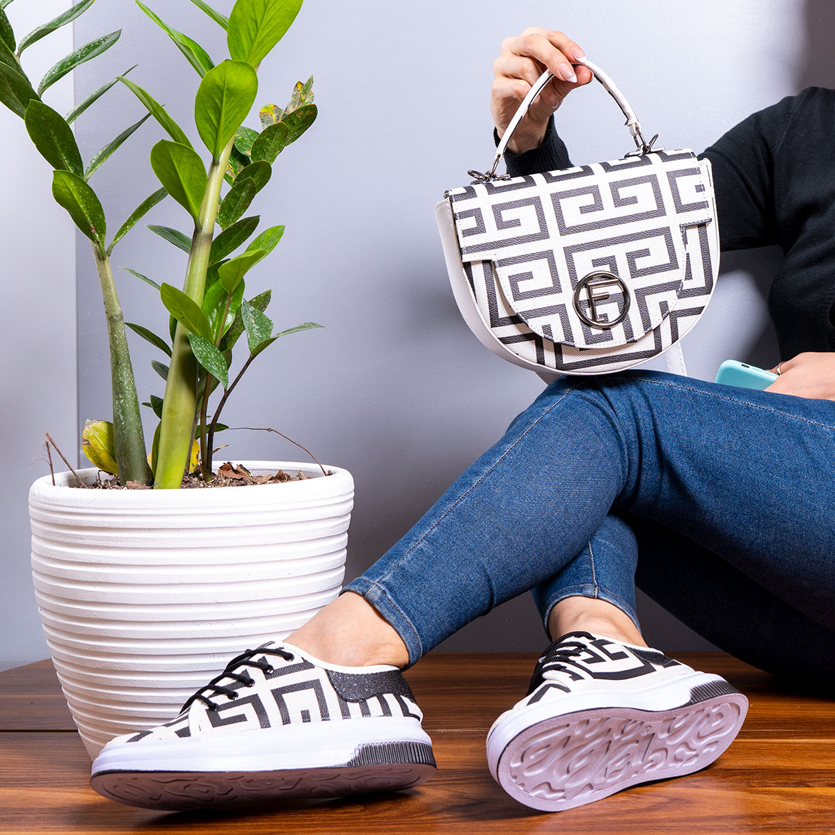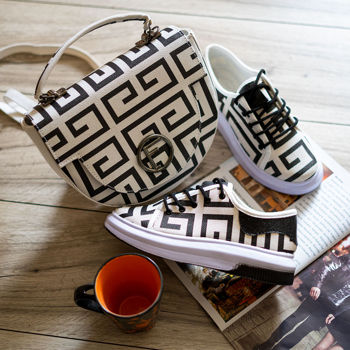 ست کیف و کفش سفید مشکی دخترانه مدلX58