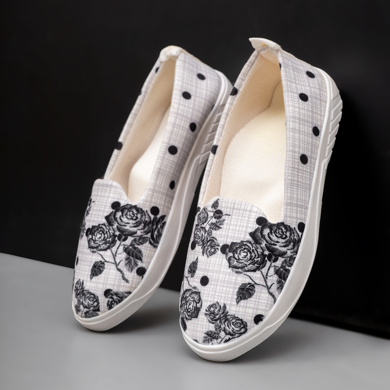 کفش تخت زنانه سفید مدل X251 سایز کفش 37 الی 40 جنس زیره : pu جنس رویه : پارچه
