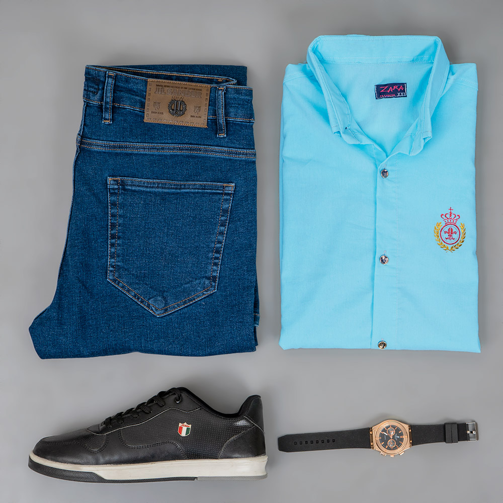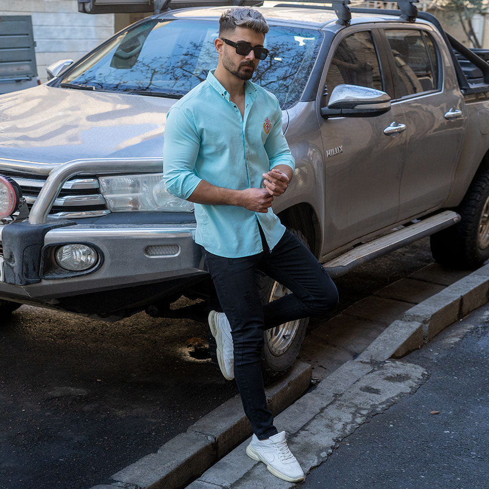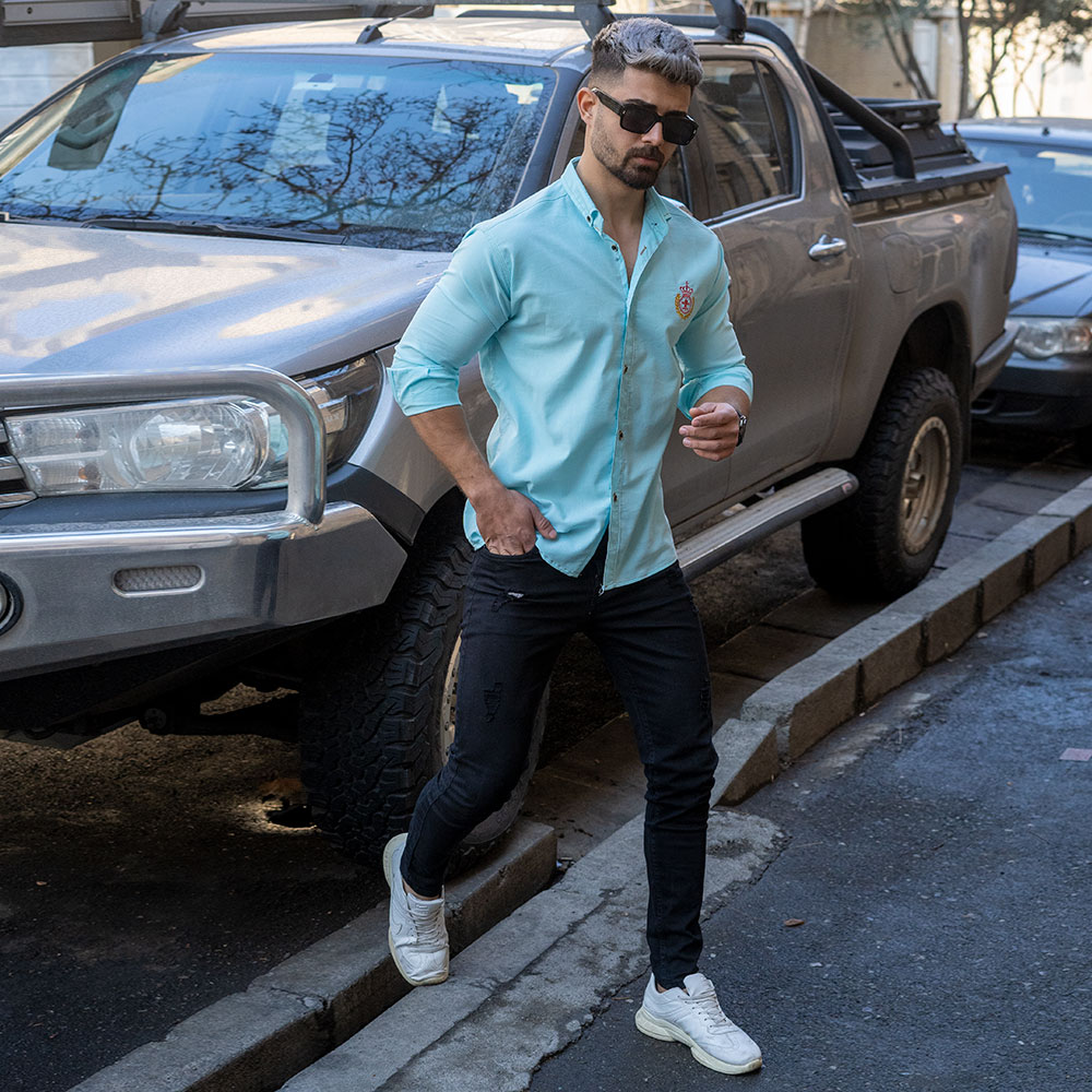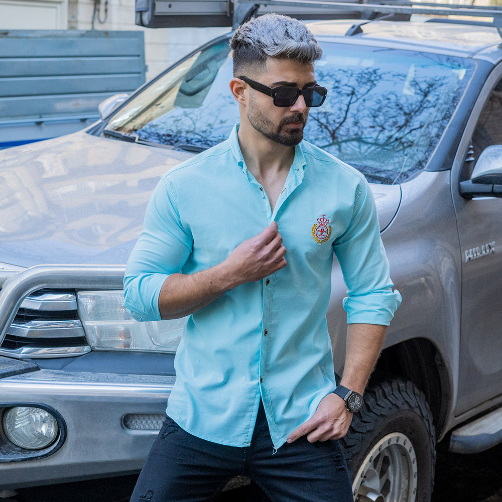 پیراهن مردانه آبی فیروزه ای مدل gabi