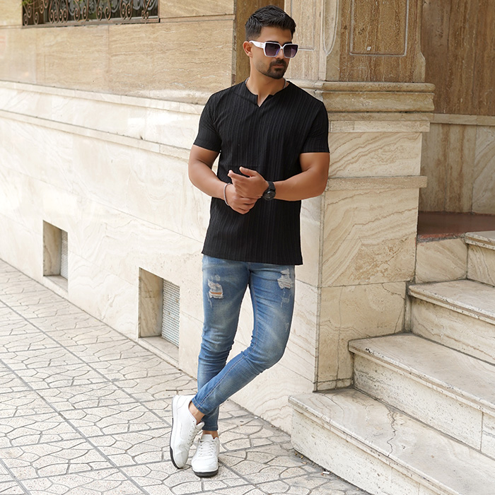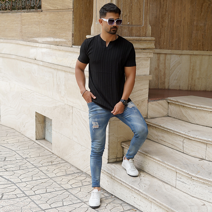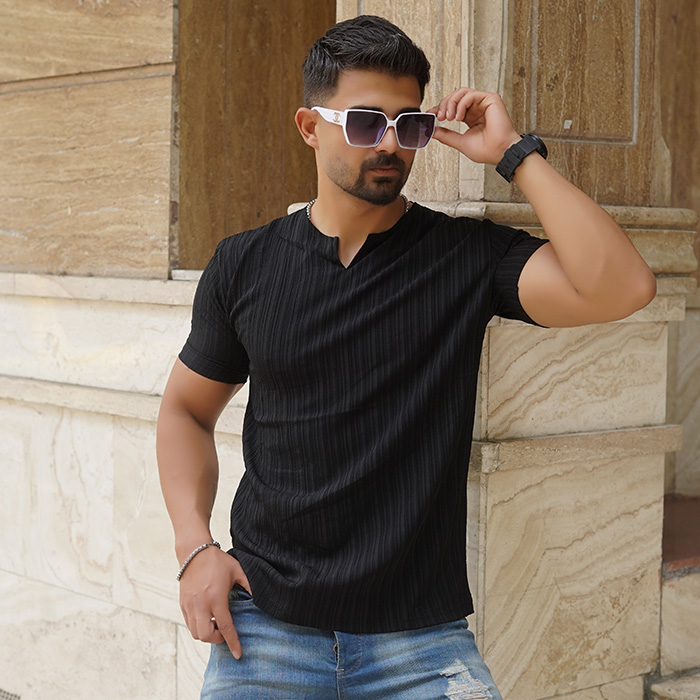 تیشرت مردانه مشکی آستین کوتاه مدل Bardia