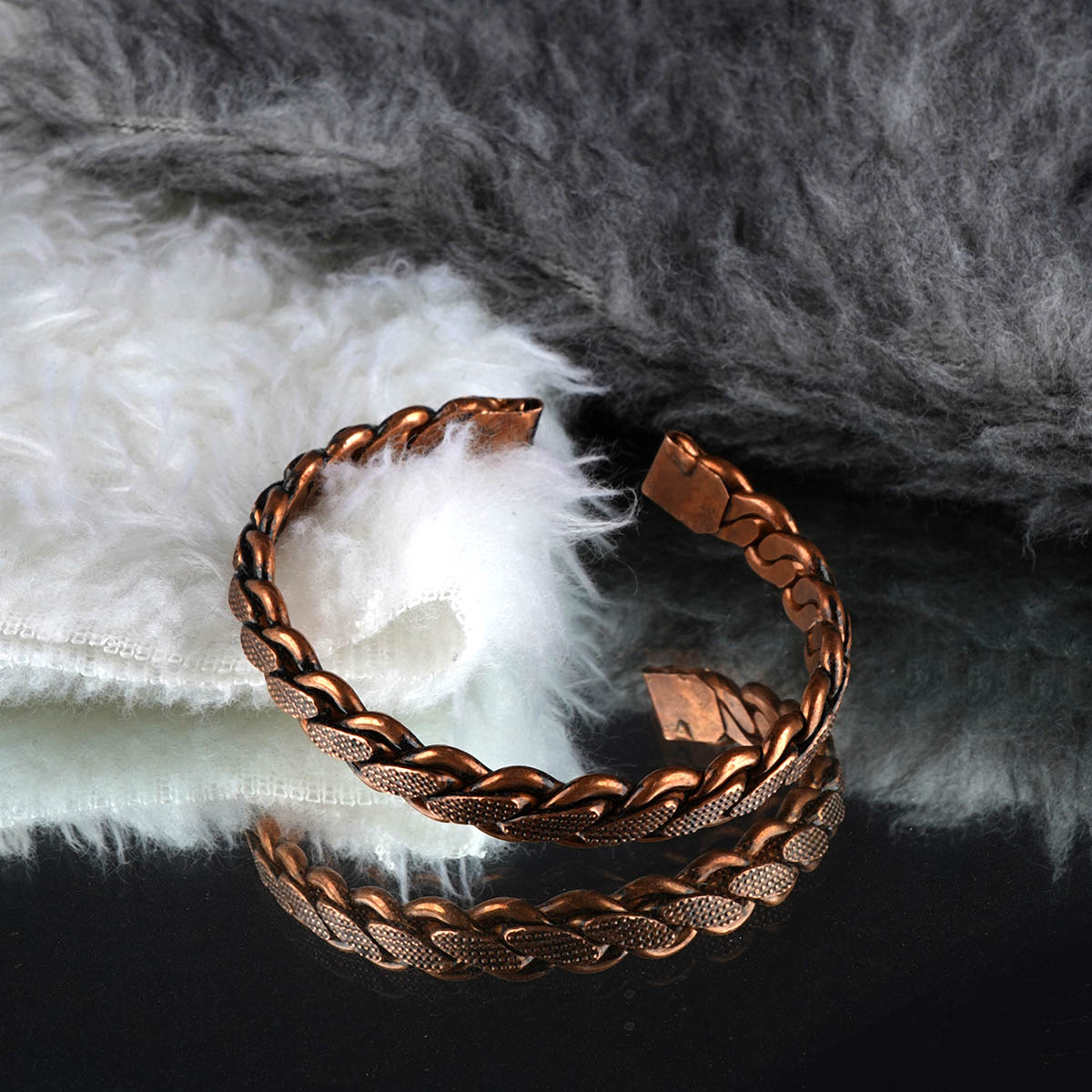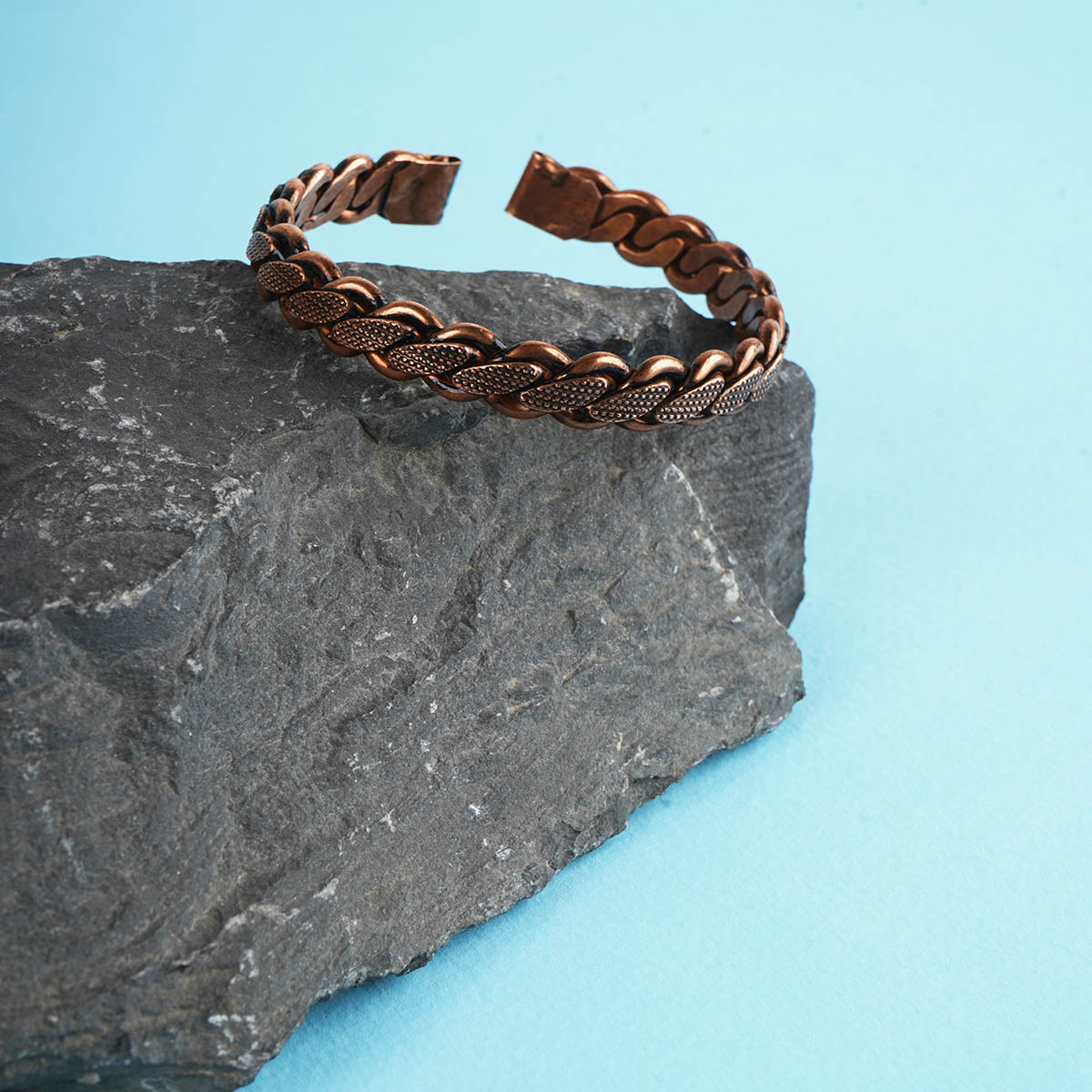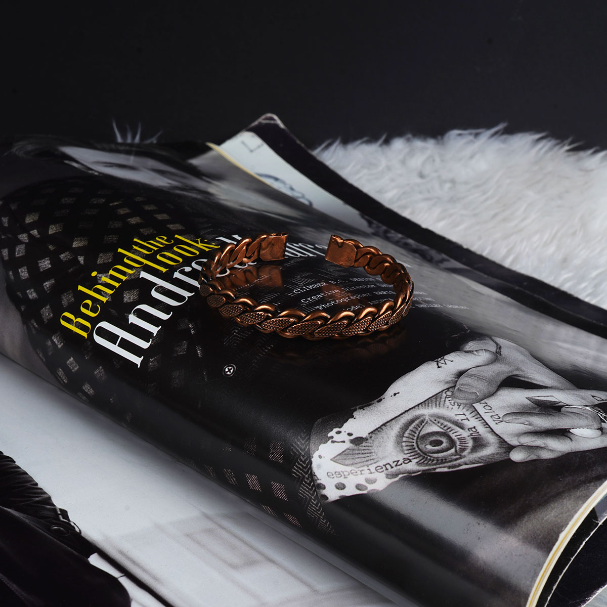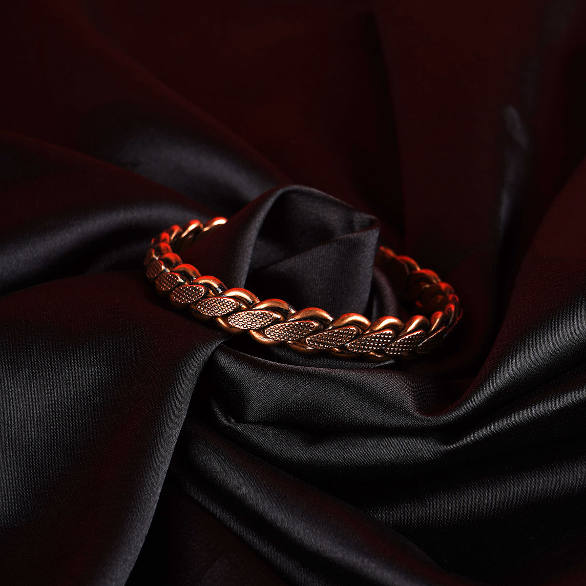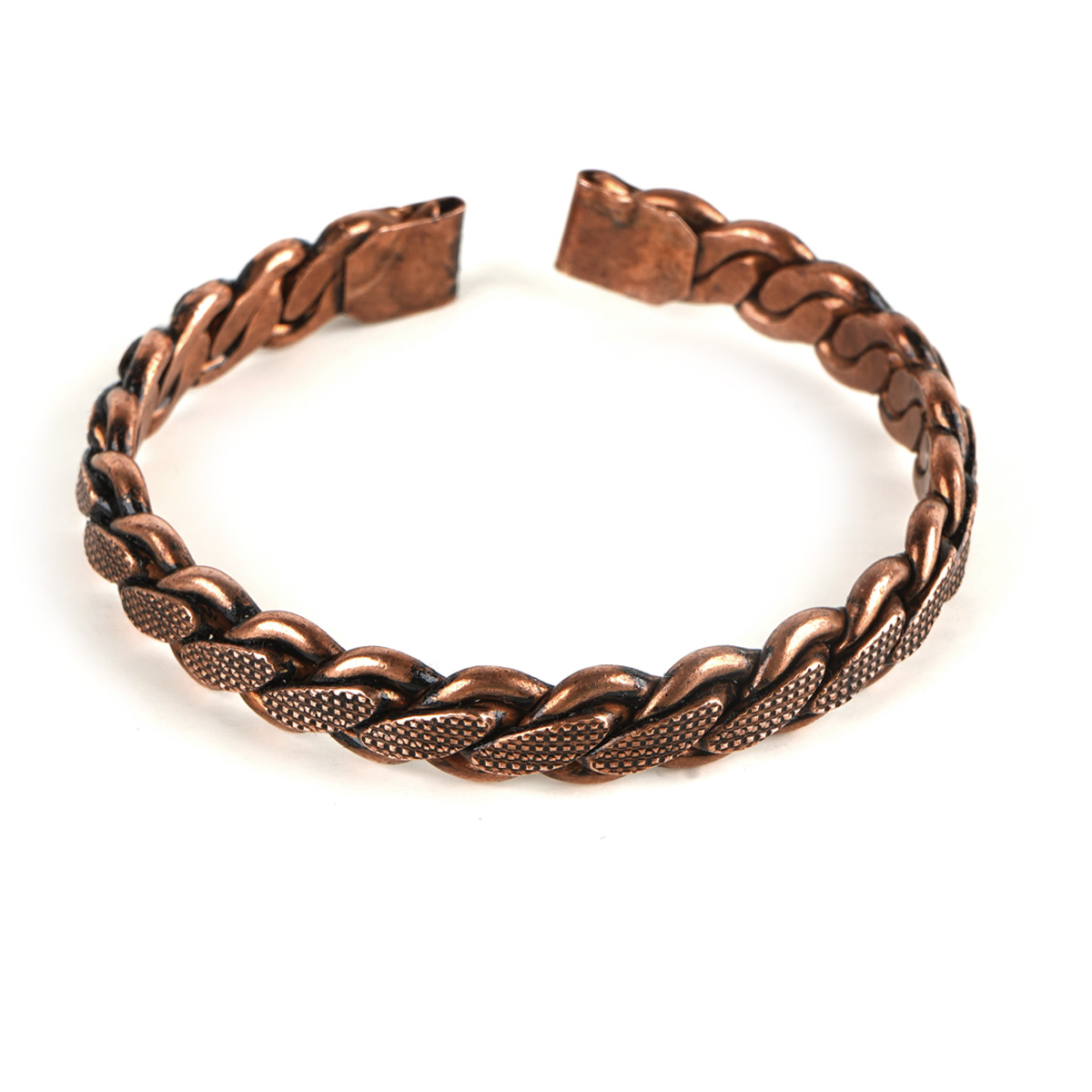 مس یک عنصر حیاتی است که در گیاهان و بدن انسان یافت می شود. استفاده از این فلز به عنوان زیور آلات تاثیرات مثبتی روی بدن خواهد داشت. این دستبند دارای طرا حی زیبا و منحصر به فرد است علاوه بر این مس بسیار بادوام بوده و تا مدت ها میتوانید از آن استفاده کنید.