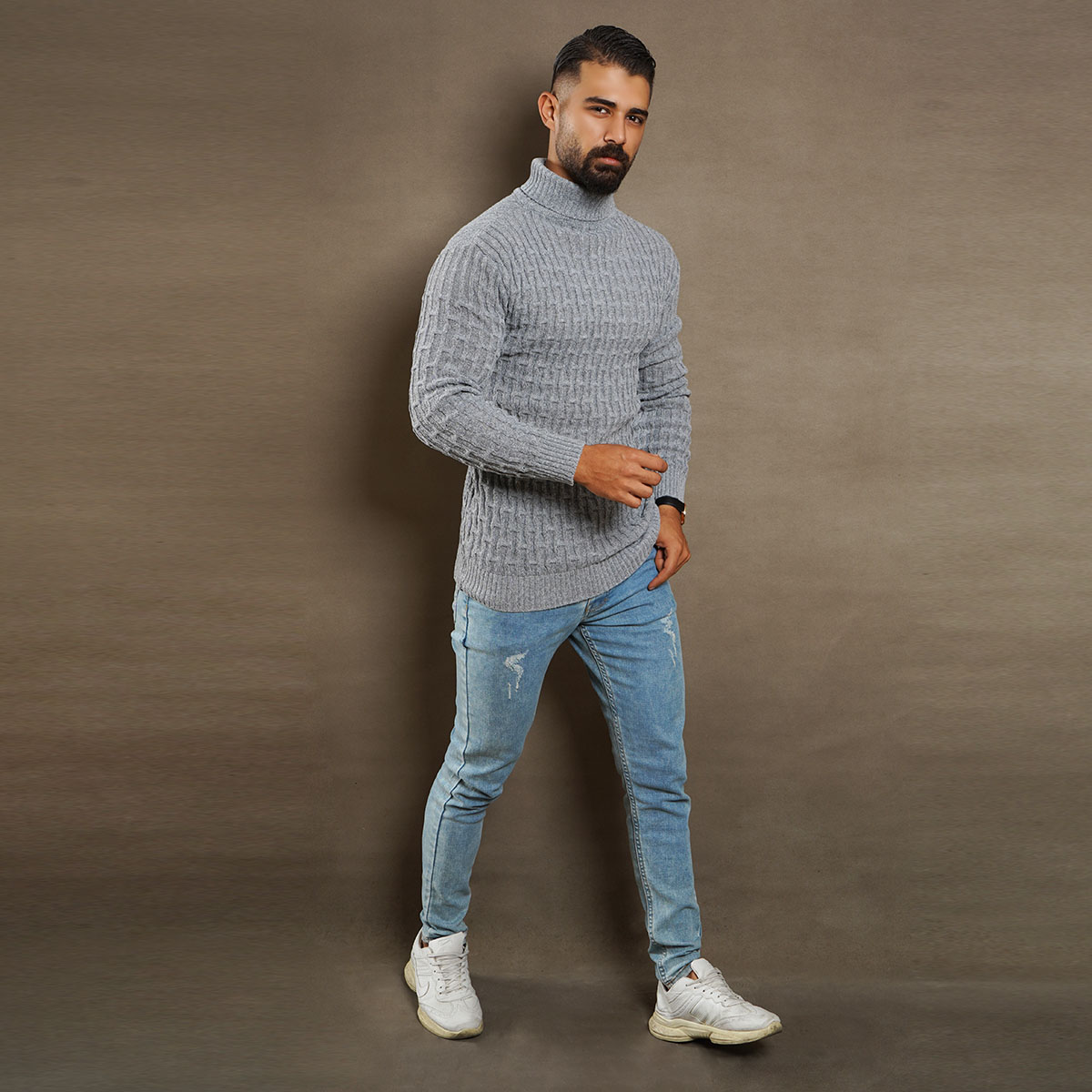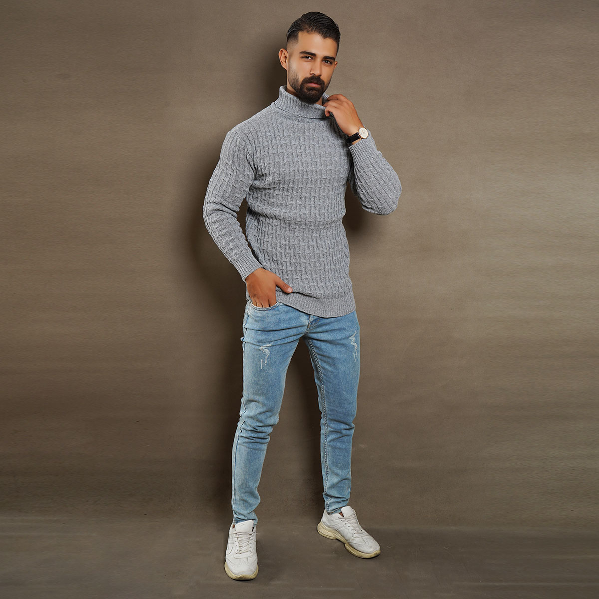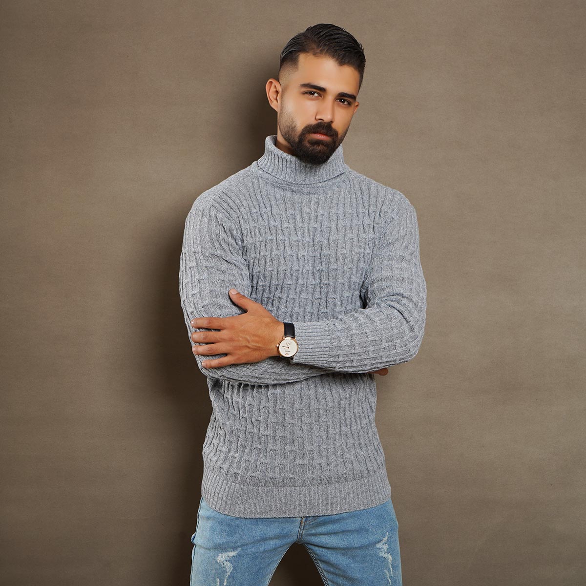 پلیوربافت مردانه طوسی یقه اسکی مدل Arad