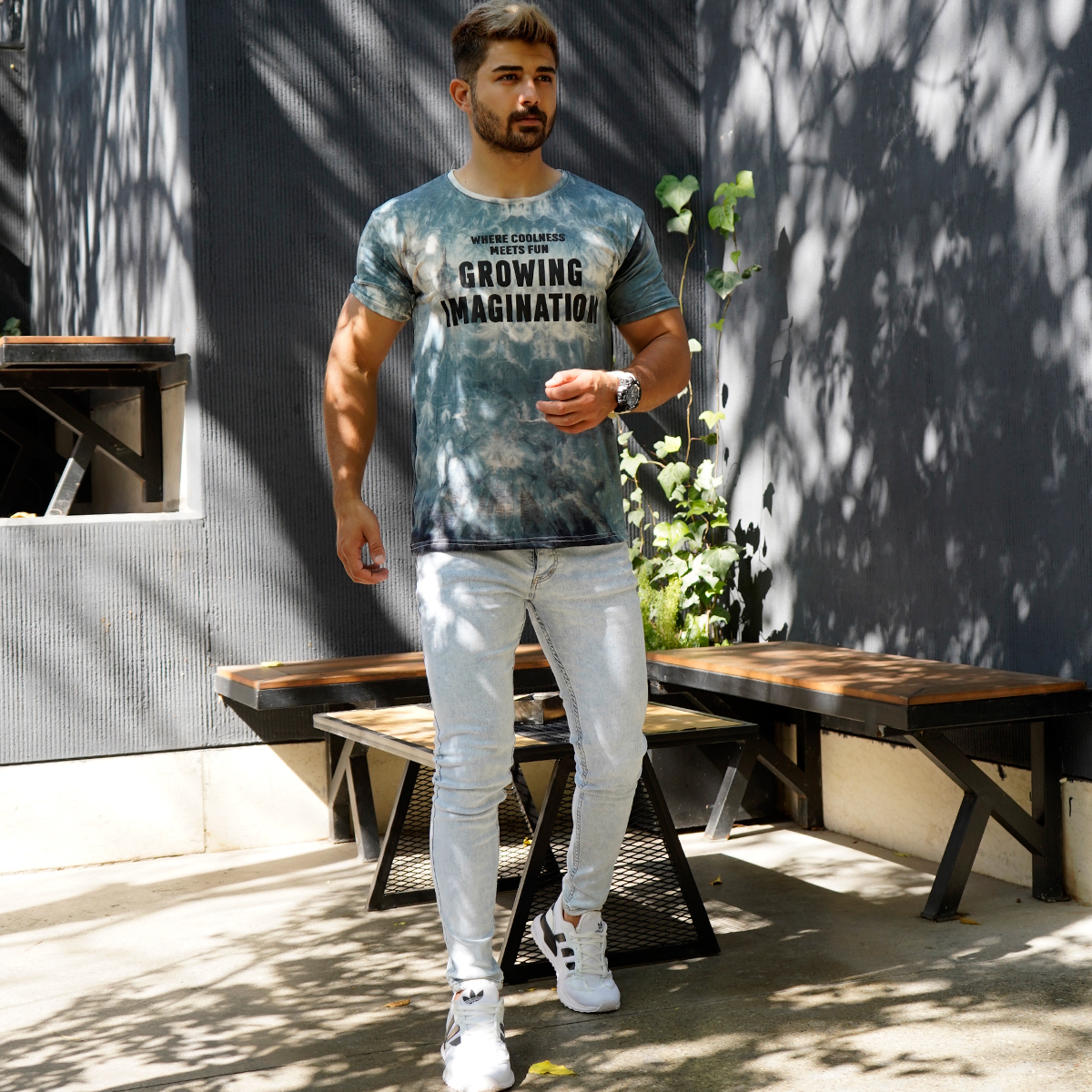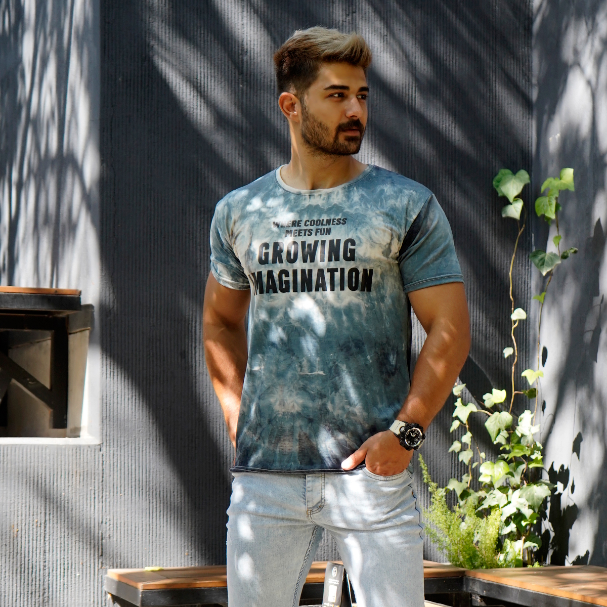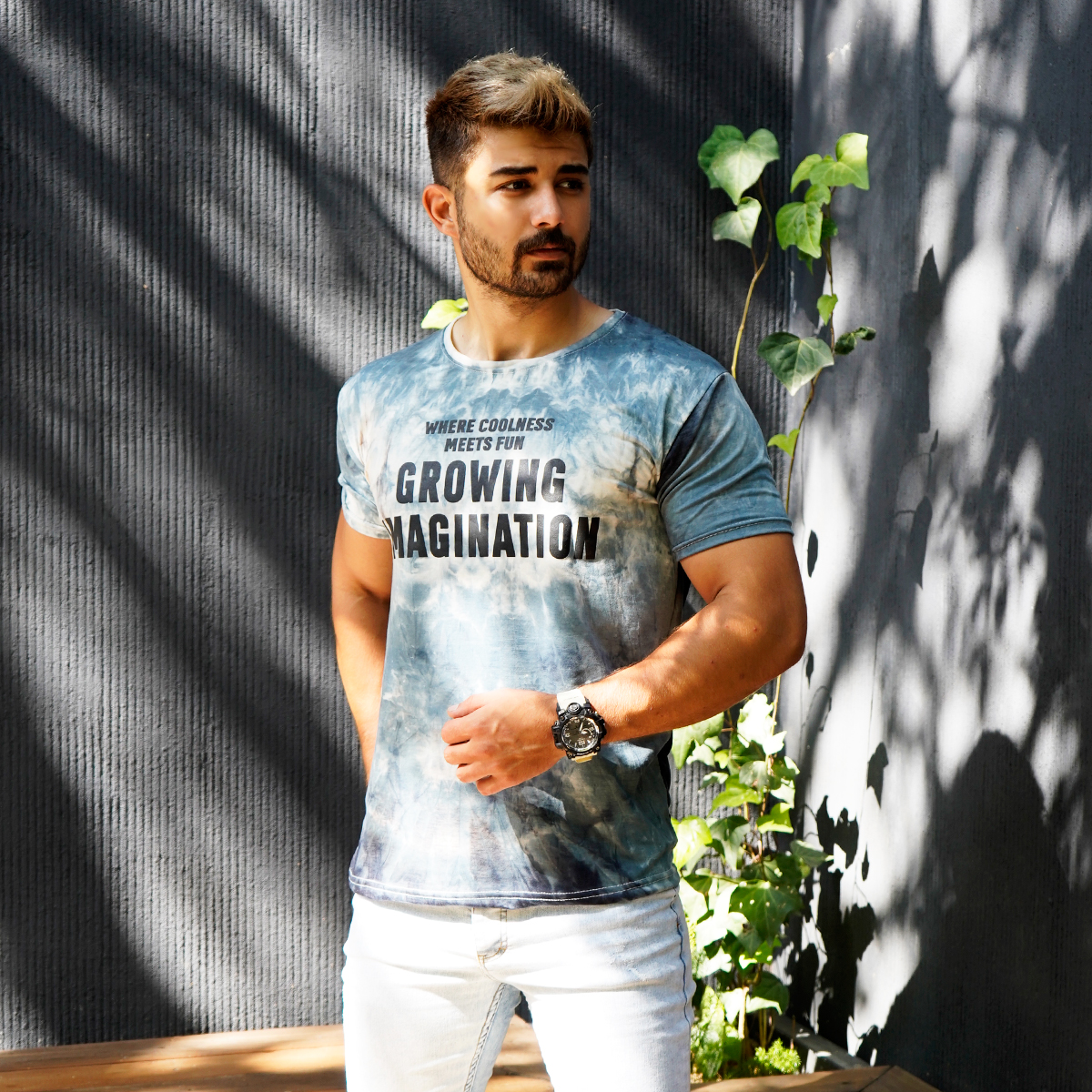تیشرت مردانه ابر و بادی طوسی مدل windy