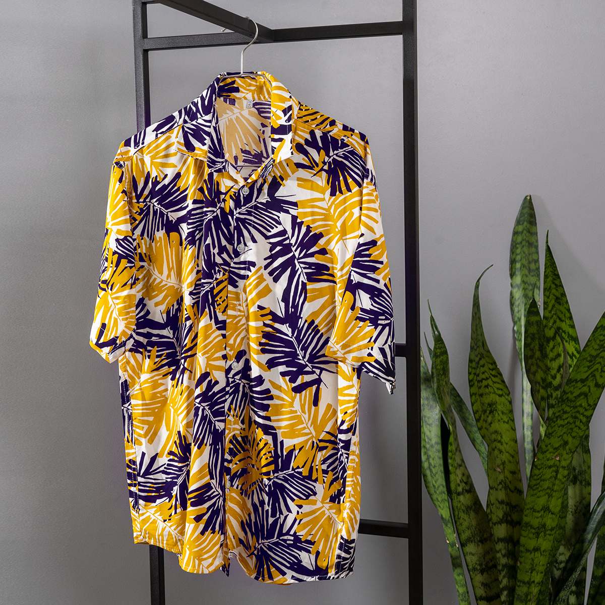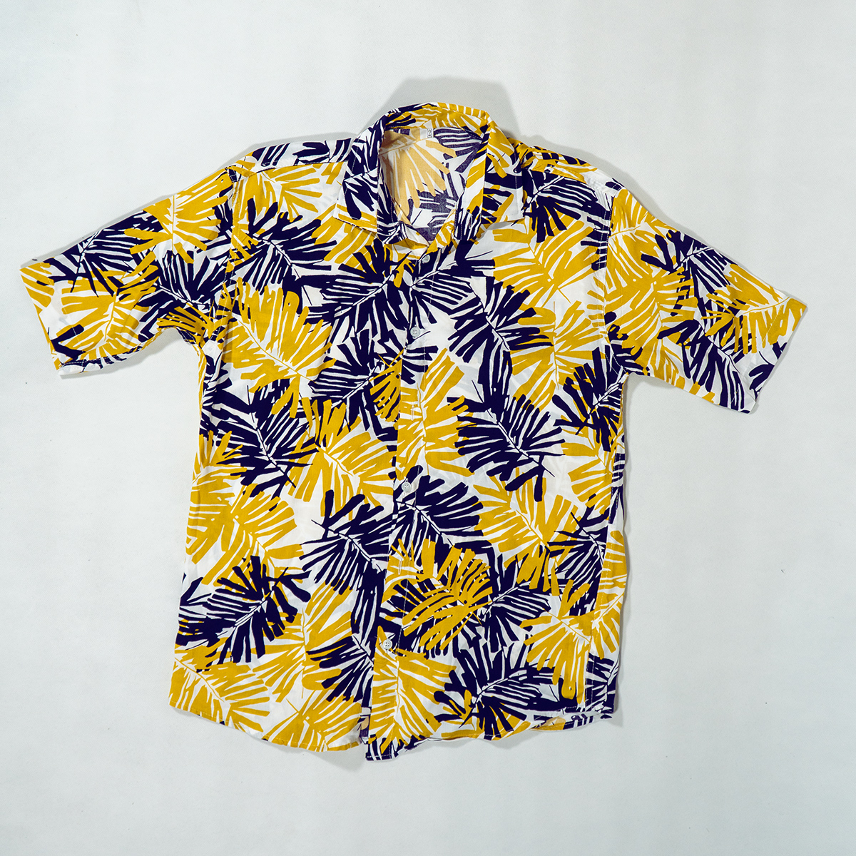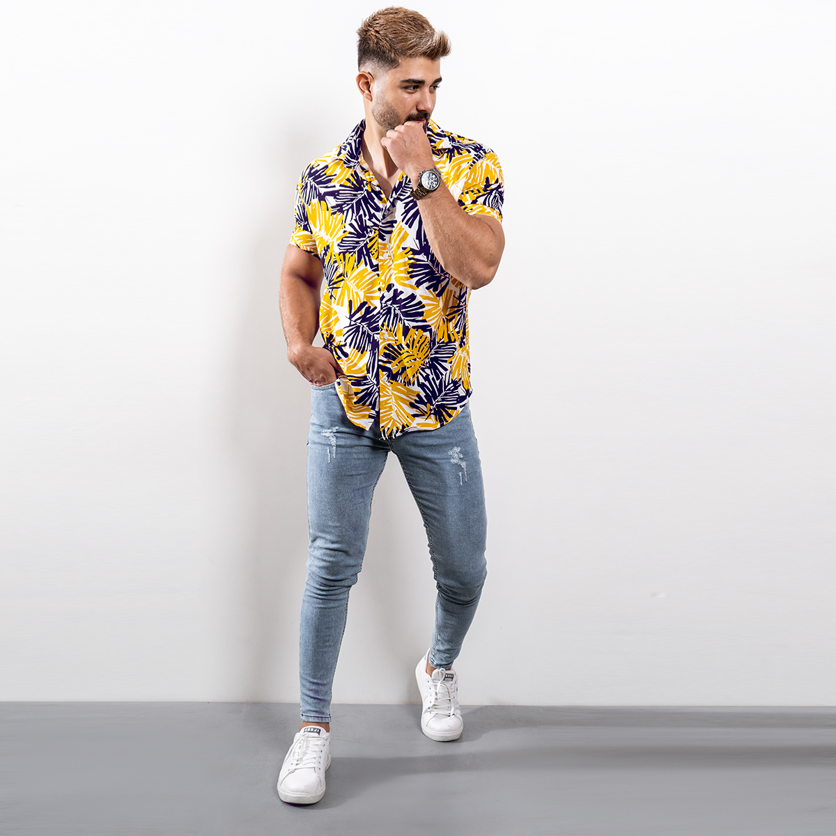 پیراهن هاوایی زرد مردانه مدل Hogo